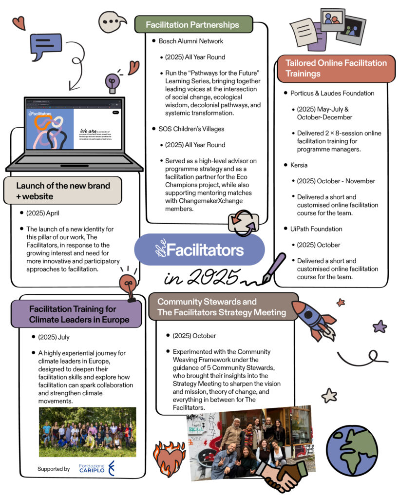 In 2025, our facilitation work took on a clearer shape and stronger identity. In April, we launched a new brand and website for The Facilitators, marking an important evolution of the second pillar of our work.